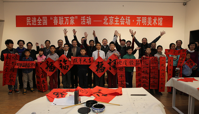 1月20日上午9点半,北京市东城区辛安里的民进中央开明美术馆里,75岁的冯秀清手举一副墨迹未干的春联笑逐颜开。“‘申年梅献瑞,猴岁雪兆丰?!嗪玫淖?,多好的词。去年我就是来这儿让民进的书画家帮着写的春联,这不,今年又来了,希望这个活动年年有?!薄 》氪舐杷档幕疃怯擅窠醒胫靼?,民进中央开明画院承办的民进全国“春联万家”活动,民进部分在京书画界会员走进鼓楼苑社区为现场群众题写春联。去年的这个时候,第一届送春联活动在这里举办,十几位书画家在现场挥毫泼墨,为现场居民和东城区文化馆书写了350多副春联和“?!弊?,得到了社区居民和东城区文化馆的极大好评,大家都觉得这个活动