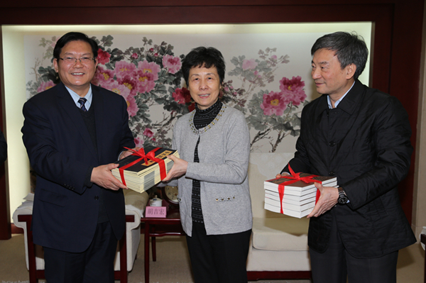 1月12日,严隽琪主席亲手送上自己为金沙县中小学捐赠的崭新图书?! ?015年1月12日上午,民进中央主席严隽琪、常务副主席罗富和在民进中央机关亲切会见中共毕节市委副书记胡吉宏,毕节市副市长、中共金沙县委书记丁翊强一行。  严隽琪亲手把自己准备的崭新图书送给丁翊强,请他代为赠送给金沙县中小学。这是民进中央领导带头响应正在全会开展的“书香彩虹”公益活动的一个场景?! 」笾菔〗鹕诚厥敲窠缁岱穸ǖ惆锓龅ノ弧N镏鹕诚厮跣∠赜虺窍绨煅Р钜?,全面提升义务教育学校综合办学水平,民进中央结合2015年社会服务工作这一年度主题,倡导“服务就在身边,人人可以参与”的微公益理念,决定在全会开展“书香彩虹”捐