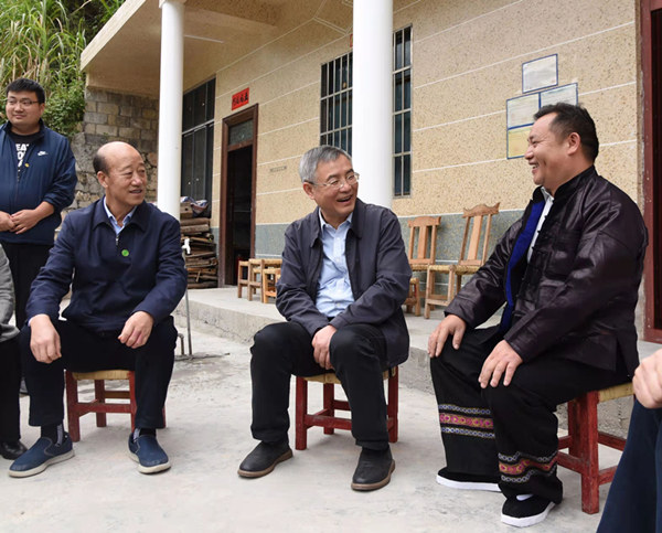 12月5日,全国人大常委会副委员长、民进中央主席蔡达峰在民进中央定点帮扶县——贵州省黔西南州安龙县开展调研。全国人大常委会委员、民进中央副主席王刚,贵州省政协副主席、民进贵州主委左定超陪同调研。调研期间,蔡达峰一行考察了开明慈善基金会资助的“开明同心·文化广场”、“开明书架进班级”等项目。在文化广场,调研组实地查看了广场建设情况?!翱鳌ね奈幕愠 笔敲窠醒朐诎锓霭优檀逑绱逭裥说谋曛拘韵钅?,由开明慈善基金会资助,不仅满足了村民日常生活需要,而且也为发展民宿旅游提供了便利。随后,蔡达峰一行来到万峰湖中学,调研民进中央帮扶的”开明书架进班级”项目。为提升农村少年儿童阅读能力,积极探索和实践乡镇
