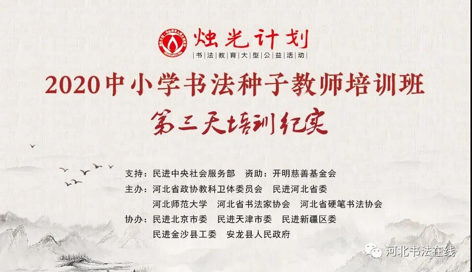 8月25日上午,“烛光计划”2020书法种子教师培训开班典礼在河北省硬笔书法协会会议中心举行。简短而热烈的开班典礼过后,在烛光计划发起人、河北师范大学书法艺术研究所所长寇学臣教授的主持下,首都师范大学中国书法文化研究院副院长宗成振教授作首场讲座。宗成振教授通过腾讯视频的方式,主讲《走进书法之美——如何引导学生欣赏书法作品提高审美情趣》。他把抽象的书法概念通过现实生活的具象反映给学生,使之关联起来,让书法审美转换成看得见、说得出的形式因素。这种方式,摒弃了生硬的理论讲解,把书法的线条及结构和大众生活统一起来,易于理解和接受,使书法学习变得更轻松,更透彻,更接近学生的认知规律。宗成振教授通过具体的