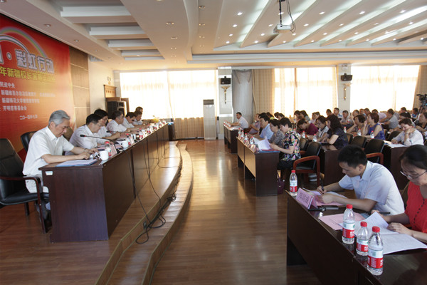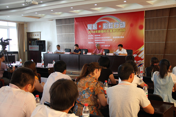 7月15日上午,“同心·彩虹行动”2014年新疆校长暑期培训班开班式在乌鲁木齐举行。图为开班式现场。 7月15日上午,由民进中央主办,新疆自治区教育厅、民进新疆区委会、新疆师范大学承办,开明慈善基金会资助的“同心·彩虹行动”2014年新疆校长暑期培训班开班式在乌鲁木齐举行。民进中央副主席、开明慈善基金会副理事长朱永新出席开班式并讲话?! 】嗍接擅窠陆嶂魑⑿陆Ψ洞笱Ц毙3づH昙鞒?。 朱永新在讲话中代表民进中央对参加培训的校长们表示热烈欢迎,向一直以来给予培训班大力支持的中共新疆区委统战部、区教育厅、民进新疆区委会等单位表示衷心的感谢。朱永新副主席出席开班式并讲话 &