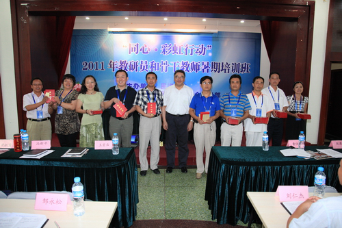 朱永新向学员代表颁发结业证书 8月19日,“同心 彩虹行动”2011年教研员和骨干教师暑期培训班圆满完成既定议程,举行结业式。全国人大常委、民进中央副主席兼秘书长朱永新出席并作总结讲话?!?nbsp; 朱永新代表民进中央主席严隽琪和民进中央常务副主席罗富和向完成学习顺利结业的各位学员表示祝贺,并向学员代表颁发了结业证书。 朱永新在讲话中概括了此次培训班主要特点和收获,对学员们的学习成果给予了充分肯定。他说,民进暑期教师培训班是民进中央一项传统工作,此次“同心 彩虹行动”培训班虽然时间比较短,但信息量大,取得了非常好的效果,希望