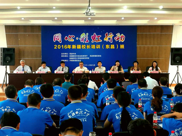 2012年8月9日,由民进中央主办,民进中央社会服务部、民进北京市委等单位承办的“同心·彩虹行动”2012年新疆少数民族校长培训班在首都师范大学举行。全国政协副主席、民进中央常务副主席罗富和出席开班仪式并讲话??嘁鞘接擅窠醒敫敝飨婷厥槌ぶ煊佬轮鞒郑窠本┦形ㄖ案敝魑鸱页鱿?。 此次新疆少数民族校长暑期培训班,是民进中央响应2010年中共中央召开的新疆工作座谈会精神,贯彻落实国家战略部署,支援新疆建设的重点工作之一。民进北京市委对高度重视,积极组织、配合开展此项工作,发挥民进在北京的优质教育资源,为促进新疆少数