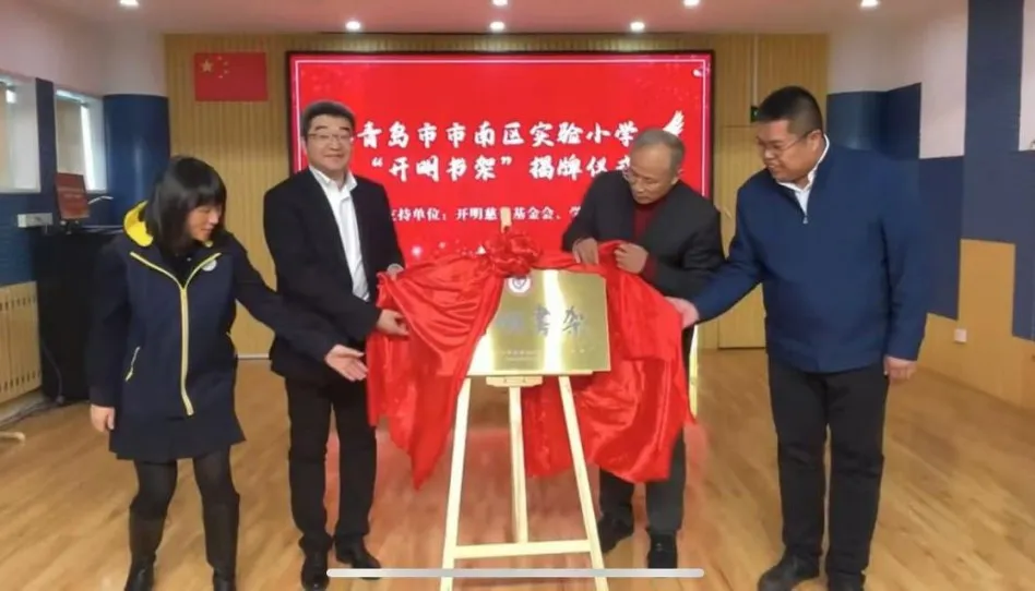 11月29日,“开明阅读成长计划”青岛站启动仪式暨“开明书架”揭牌仪式在青岛举行,基金会副理事长金鑫和秘书长武俊涛出席仪式并发言。