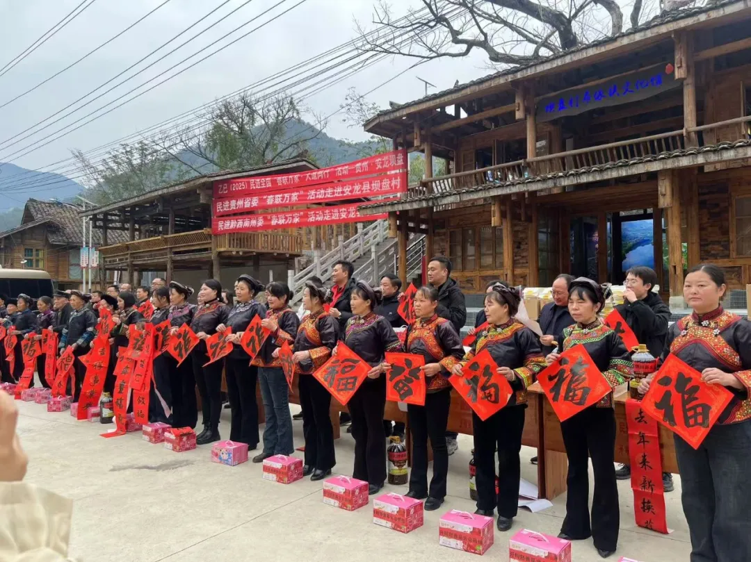 1月15日,2025年春节慰问暨“春联万家”活动在贵州省黔西南州安龙县万峰湖镇坝盘村举行。