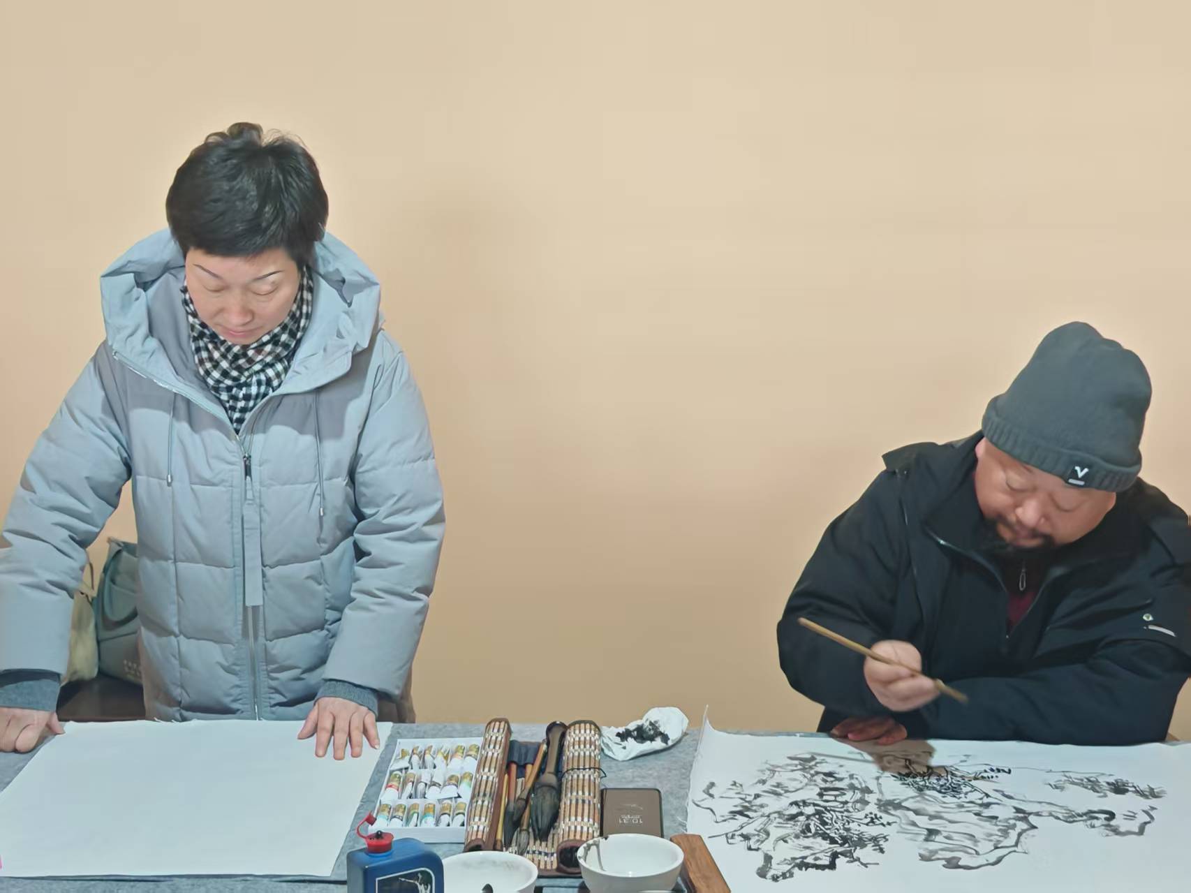 村民们热情高涨,纷纷前来与艺术家们互动,并争相求得墨宝。艺术家们不畏严寒,挥毫泼墨,为村民们创作了一幅幅精美的书画作品,展现了深厚的艺术功底和对基层群众的深情厚谊。