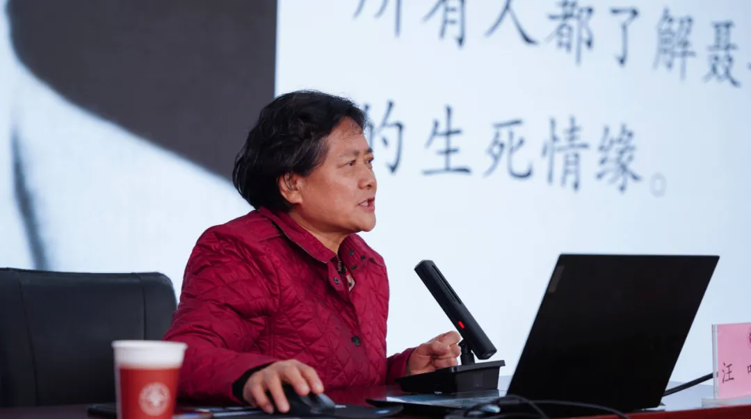 汪叶菊以人民音乐家聂耳的成长故事为线索,结合珍贵史料与音像资料,生动讲述了聂耳如何将个人理想融入时代洪流,以艺术创作服务人民的感人历程。她勉励学子:“青年当以聂耳为榜样,树立高远志向,在艺术与生活中追求真善美,用才华报效祖国?!苯沧殖』ザ攘?,学生们纷纷表示深受鼓舞。