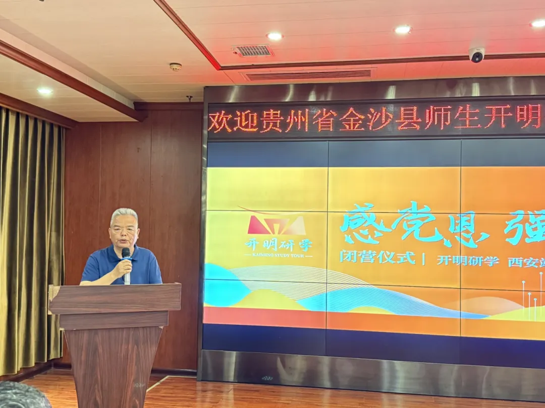 在结营仪式上,民进陕西省委会专职副主委李正升对本次研学活动的成功举办表示热烈祝贺。他强调,本次研学不仅是知识的积累,更是一次自我成长与突破的宝贵经历。他寄语同学们以永不停歇的西迁精神锚定人生航向,用历久弥新的红色基因锻造精神铠甲,借生生不息的传统文化筑牢自信根基;期待同学们将古都收获的智慧结晶,化作建设家乡的青春力量,让“强国有我”的誓言在云贵高原开出绚丽之花。