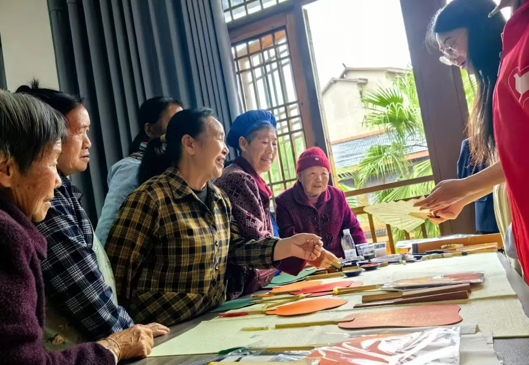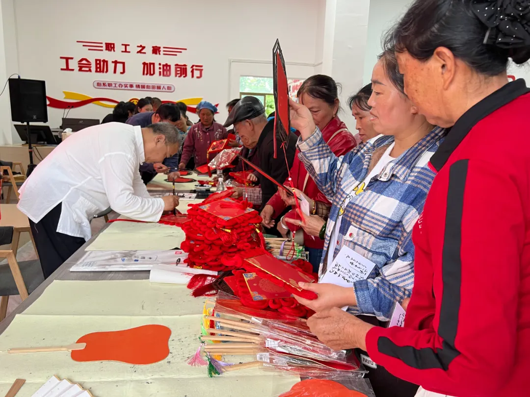 讲师团一行走进双龙社区,现场挥毫,为村民书写福字、绘制扇面。