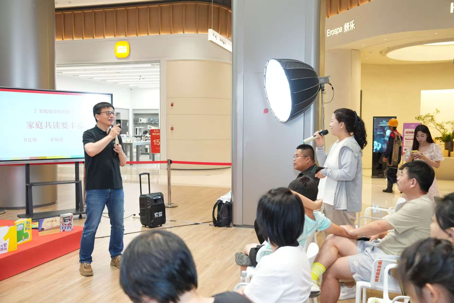 他针对“如何开展家庭阅读”结合案例,给出了丰富、具体的指导方法:书足够,场景多,方法活。活动现场氛围热烈,家长们表示收获匪浅,打开了阅读新视角,活动结束后热情不减,围着李一慢继续请教。