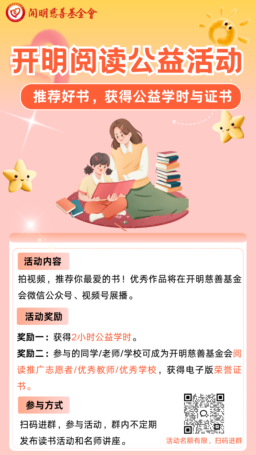 扫码进入“开明阅读”公益活动群,查看本次直播回放,了解后续更多阅读讲座以及分级阅读书单。