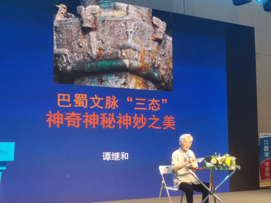 7月26日,“全民阅读·开明大讲堂”第二期活动在重庆国博中心开讲。活动特邀四川省政府文史研究馆资深馆员、社科院巴蜀文化首席专家谭继和,以“立足巴蜀文化,助推成渝出版业高质量发展”为题发表主旨演讲。时值第33届全国图书交易博览会,开明大讲堂与书博会同频共振,吸引大批参展机构和读者的热情关注,线上线下1000余人次观看。
