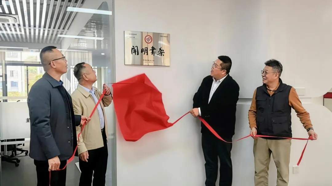 为深入贯彻落实"全民阅读"国家战略,推动优质文化资源向基层延伸、向社区覆盖,"开明书架"揭牌仪式在泉州市丰泽区华大街道南埔社区举行。武俊涛、王跃仁、黄志煌、林智胜共同为泉州首个"开明书架"揭牌。