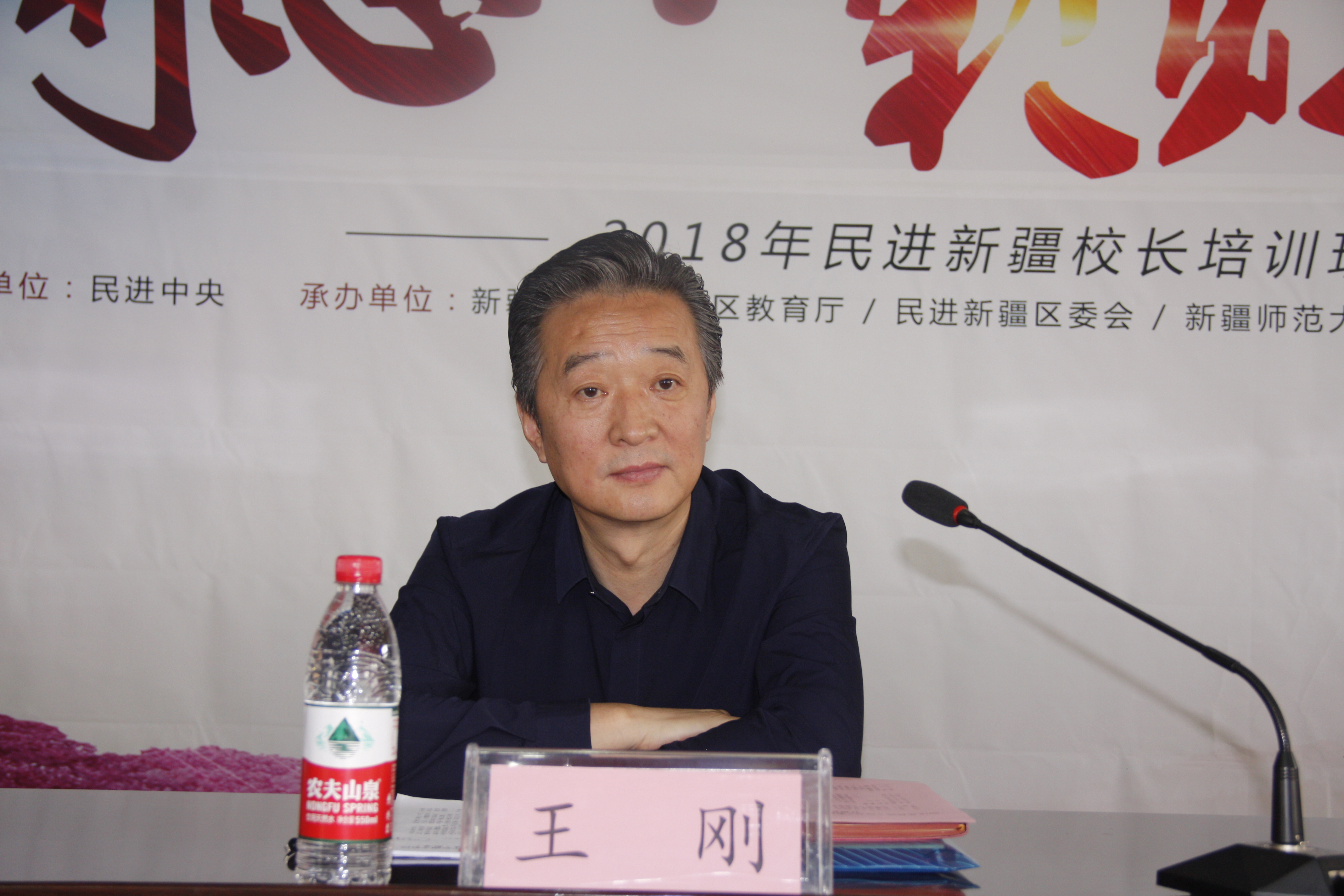 受民进中央主席蔡达峰、常务副主席刘新成委托,王刚代表民进中央对参加培训的校长们表示热烈欢迎,向一直以来给予培训班大力支持的中共新疆自治区党委统战部、自治区教育厅、民进新疆区委会、新疆师范大学等单位表示感谢。