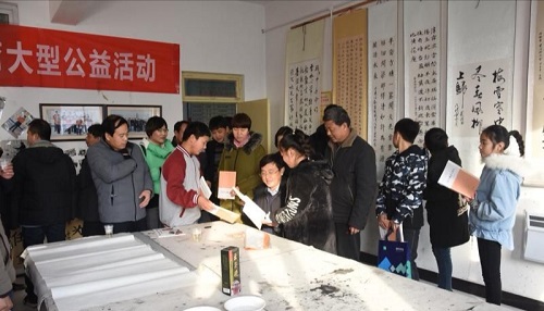 开幕式上,主办单位向当地捐赠了2000册书法教材和4套书法教学软件,授牌建立了4所“烛光计划·百所乡村学?!?,举办了雄安新区暨安新县首期书法教师培训班。栗建华、张运凯、陈联合、刘宗超分别为安新县安州镇总校、端村学校、雄县雄州镇一浦东小学、容城县南阳中学授牌,陈联合、寇学臣为教师培训授课,并深入学生课堂进行临摹示范和创作指导,杨士彬代表主办单位发表讲话。 教师培训现场,来自雄县、安新县、容城县三地120名老师认真聆听两位专家授课。陈联合主席做《书法教育与文化传承》专题讲座,寇学臣教授主要讲授中小学书法教育的理念与方法。两位专家理论与技法并重,思想深刻,内容丰富,由表及里,层层深入,解决了书法教师教学中的许多实际问题,赢得在场教师们的一致好评。