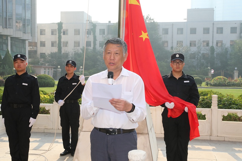 在升国旗仪式上,伴随着国歌的响起,五星红旗冉冉升起,全体机关干部职工面向国旗、歌唱国歌,表达了对伟大祖国的崇敬热爱之情。