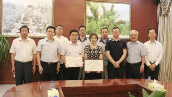 捐赠仪式上,王建国、秦东魁分别为李青颁发了捐赠牌和捐赠证书。