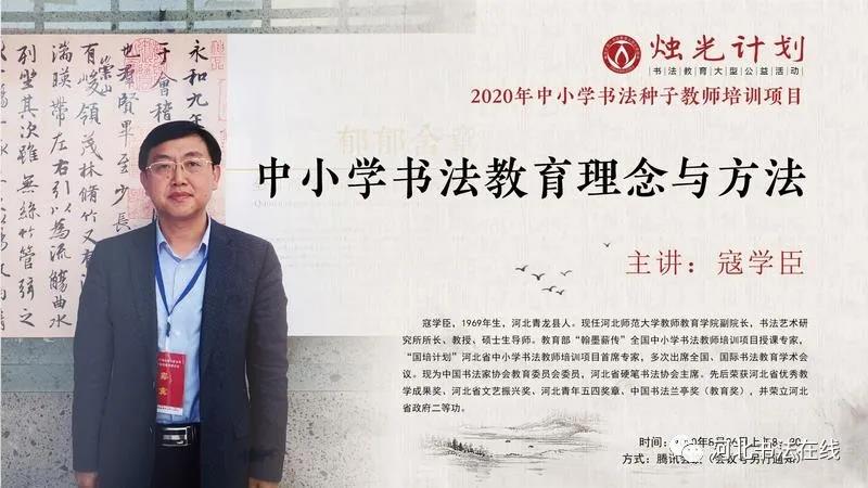 8月26日上午,寇学臣教授通过腾讯视频,为全体学员做了《中小学书法教育理念与方法》专题讲座??芙淌谑紫却又行⊙榉ń逃纠砟睢⒛勘暧肽谌?、实施建议与要求三个方面对教育部《中小学书法教育纲要》进行了深度的解读。并详细阐释了书法教与学的方法,即:一条捷径(临摹经典法帖),两大技法(笔法、结构),三个要领(眼到、手到、心到)。并以自身近30年教学经历,从“读帖、摹帖、临帖、入帖和出帖”五个环节,为中小学书法教师的“教法与学法”提供了科学的指导意见。