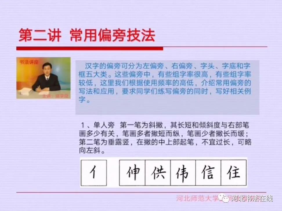 下午,寇学臣教授通过学习通线上平台讲授了“楷书结构形式与规律”,在分析不同结构形式搭配技巧的基础上,总结出整齐平正、布白均匀、因字立形、上下对正、左右穿插、包容相称、连续各异、协调统一八大结构规律??芙淌谏慕步夂脱菔荆箍菰锏氖榉挤ū涞糜泄媛煽裳?,令人耳目一新。