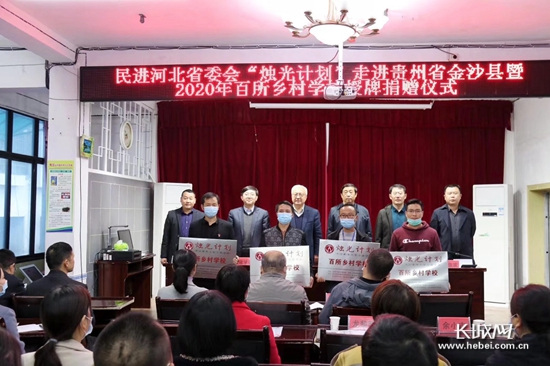 30日上午,“烛光计划”走进金沙县授牌、捐赠活动在金沙二小隆重举行,金沙县县委统战部副部长何什永、县教育局局长穆俊波、民进金沙工委黎佑海等领导出席,民进河北省委二级巡视员潘光做重要讲话。在民进中央社会服务部的支持下,在疫情期间通过“书法微课堂”先后为金沙县培训书法教师387人,暑期培训“种子教师”20人,遴选建立4所“百所乡村学?!薄;疃殖?,向金沙县二小、金沙县沙土镇二小、金沙县沙土镇初级中学、金沙县源村镇初级中学等4所学校授牌,捐赠“H格习字教学系统”4套,毛笔教材200册,硬笔练习本2600册,价值达132800元。据寇学臣教授介绍,“烛光计划”2016年曾经走进金沙县,举办全县首批中小学书法教师培训,在金沙一小建立了实验学校,并签署了三年帮扶协议,多年来已经凝聚了一大批书法教育工作者。先天晚上,在金沙县民进开明书画院,寇学臣教授为闻讯赶来的30多名书法教师进行创作示范和作品指导,解答中小学书法教学中的困惑,分享中小学书法教育的成功案例,广大教师久久不肯离去。
