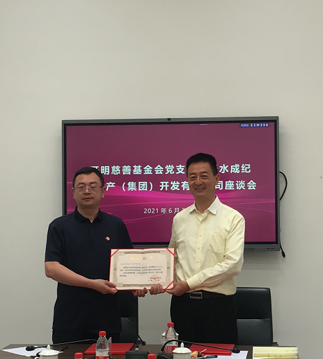 6月22日,开明慈善基金会理事长秦东魁带队到甘肃天水成纪房地产(集团)开发有限公司(以下简称天水成纪公司)考察调研并召开座谈会。甘肃省政协常委、民进甘肃省委会副主委马刚,天水成纪公司董事长李茗宏出席会议。会议由开明慈善基金会理事、党支部成员杜一鑫主持。