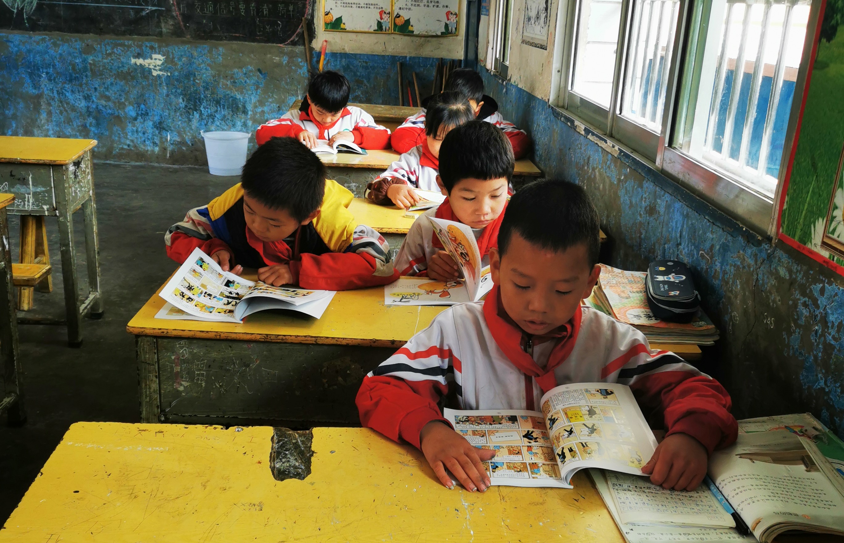 冬日中午,在贵州省金沙县柳塘镇中心小学教室里,孩子们争先恐后地纷纷从新书架上取出崭新的图书来阅读,他们有的全神贯注,有的不时发出清脆的笑声,有的眉头微皱思考着,空气中书墨飘香。在阅读的陪伴下,孩子们度过了充实快乐的午休时光。