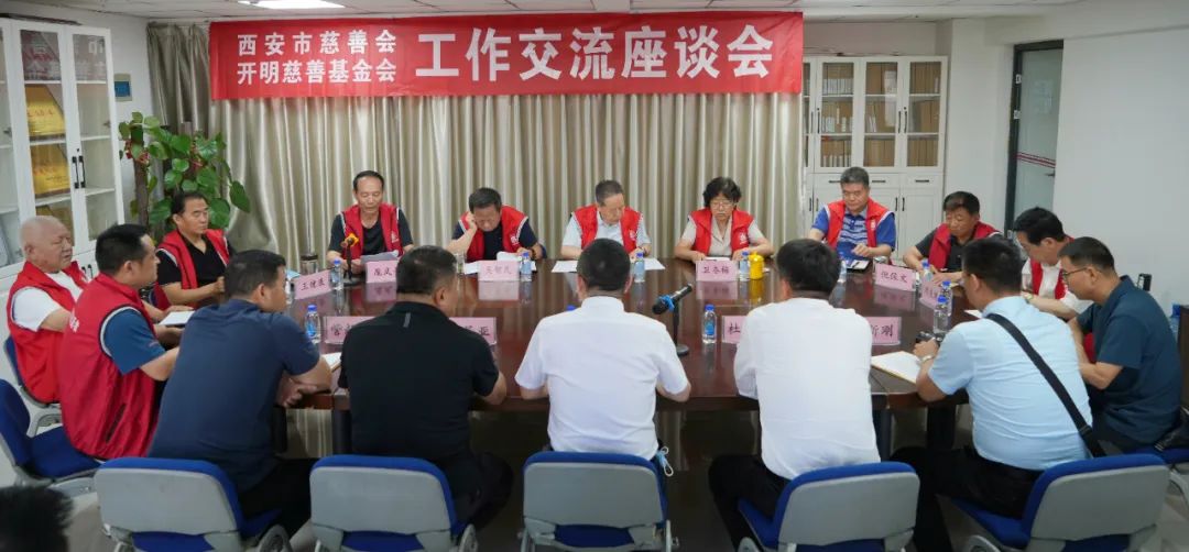 开明慈善基金会理事苏尼亚、杜一鑫,监事訾超杰,副秘书长苏新刚,西安市慈善会办公室主任刘友财,慈善专员李西岺及宣传部、募集部、项目部负责人和工作人员参加座谈。