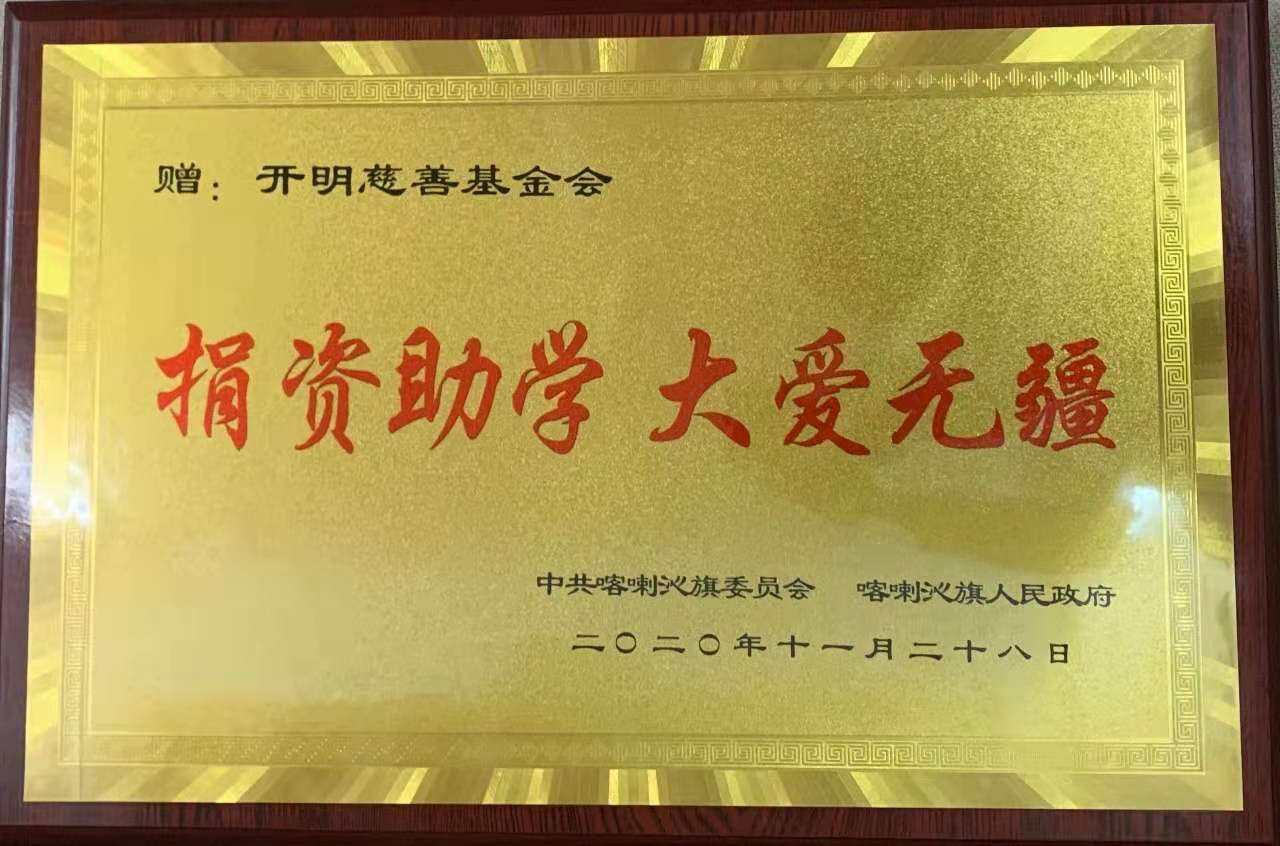 2020年11月28日,由开明慈善基金会支持,北京市西城区律师协会举办的“大手拉小手”一对一捐资助学现场捐赠活动在内蒙古喀喇沁旗举行。西城区律师协会将西城律师和社会爱心人士捐助的30.9万元助学金,亲手交到198名贫困学生手中。