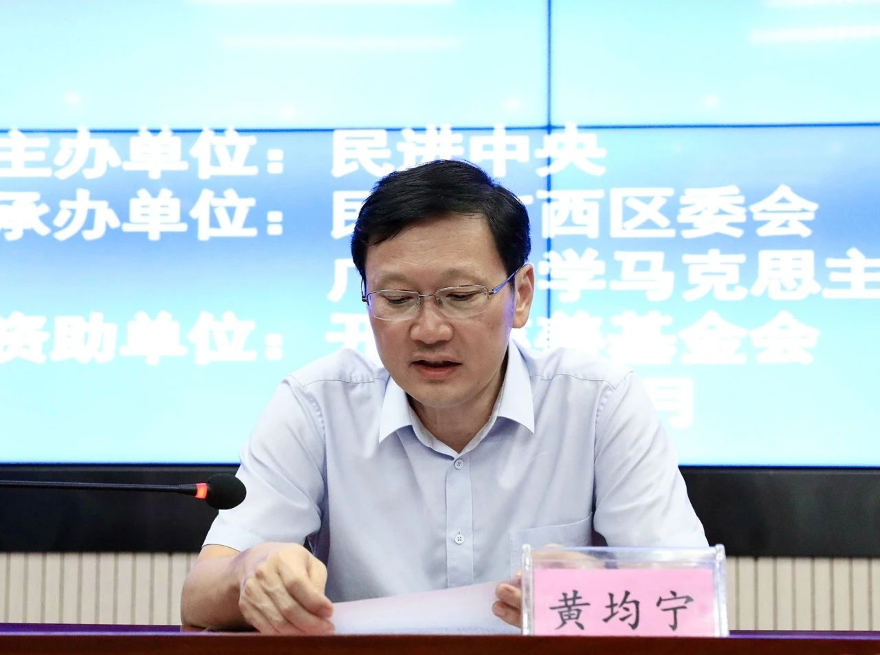 7月19日至20日,由民进中央主办、开明慈善基金会资助、民进广西区委会承办的“同心·彩虹行动”国家乡村振兴重点帮扶县教师培训班,在广西大学马克思主义学院举行,民进广西区委会副主委黄均宁出席开班式并致词。来自广西三江、隆林、那坡和贵州金沙、安龙等10个县的80名县、乡(镇)初级中学教务主任、教研组长参加为期两天的培训。