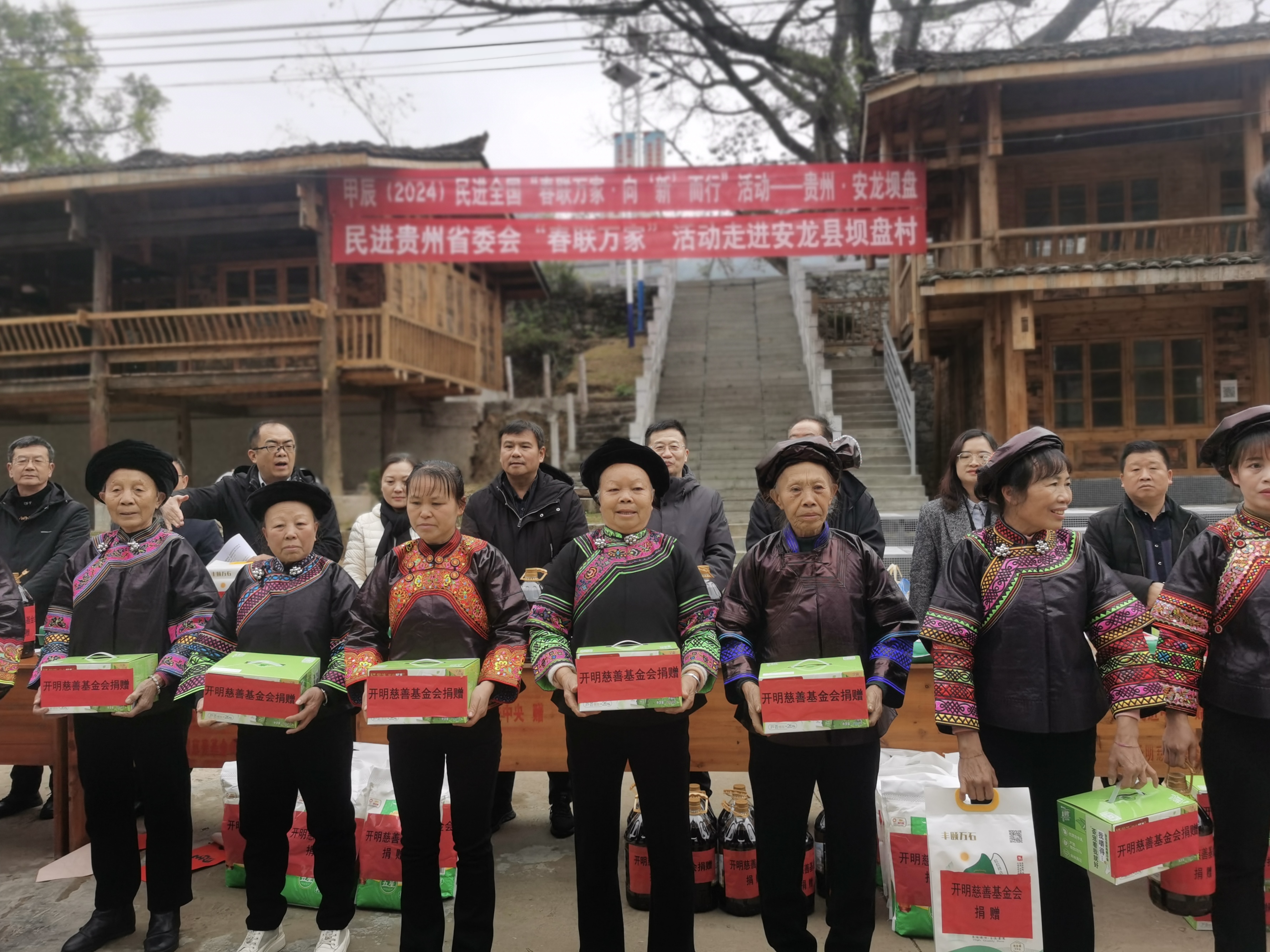 1月29日,开明慈善基金会新春慰问活动在安龙县万峰湖镇坝盘村举行。民进中央社会服务部部长、开明慈善项目协调工作小组组长刘文胜,副部长、项目协调工作小组成员李长青,省政府参事、民进贵州省委会秘书长杜正军等同志出席活动。