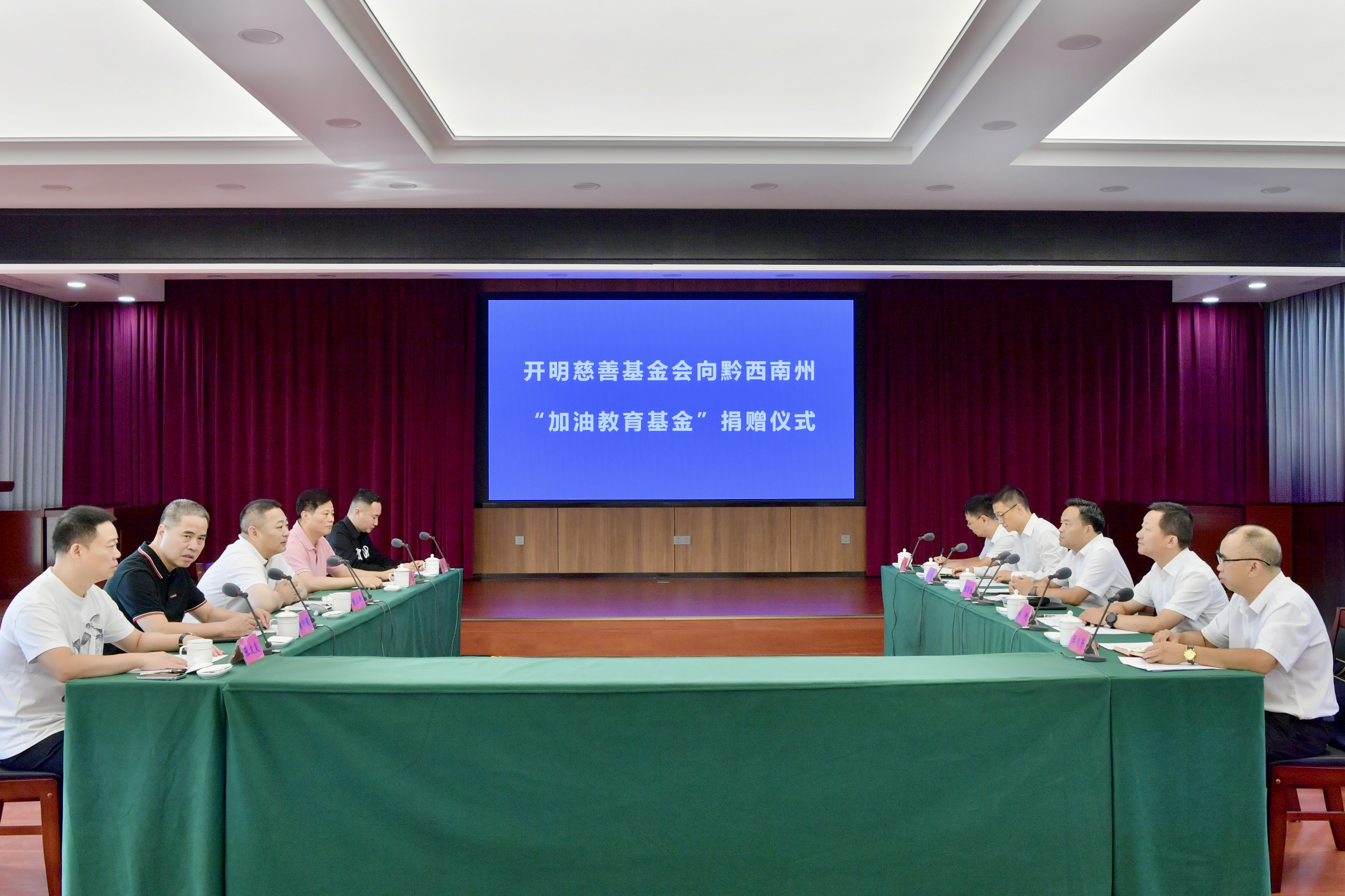 8月21日,开明慈善基金会向黔西南州“加油教育基金”捐赠仪式在兴义举行,现场向黔西南州“加油教育基金”捐赠人民币500万元。黔西南州委书记陈昌旭,开明慈善基金会理事长陈正拜出席捐赠仪式并讲话。